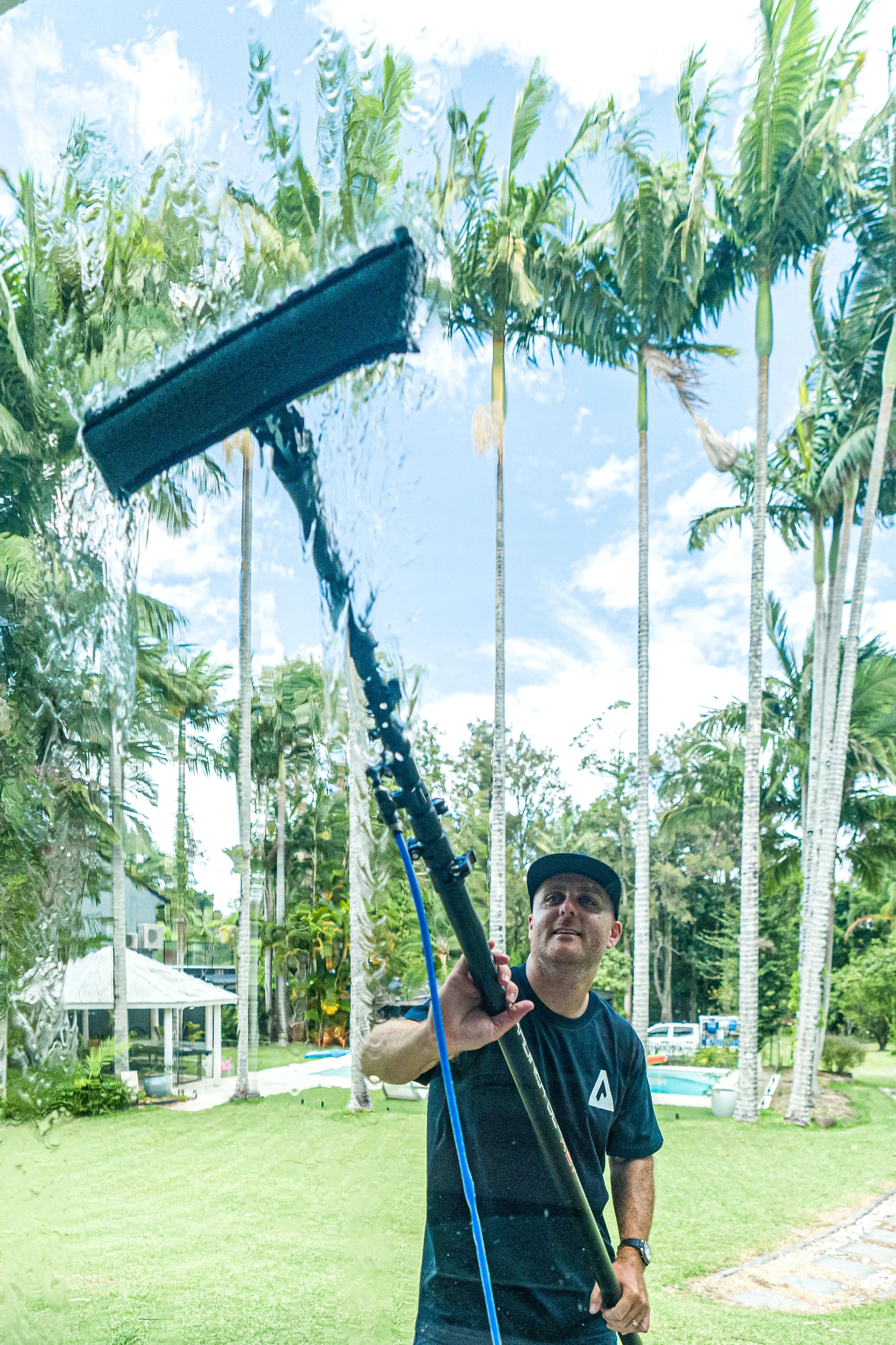 Multi-storey window cleaning for a premium apartment building using pure water fed pole systems.